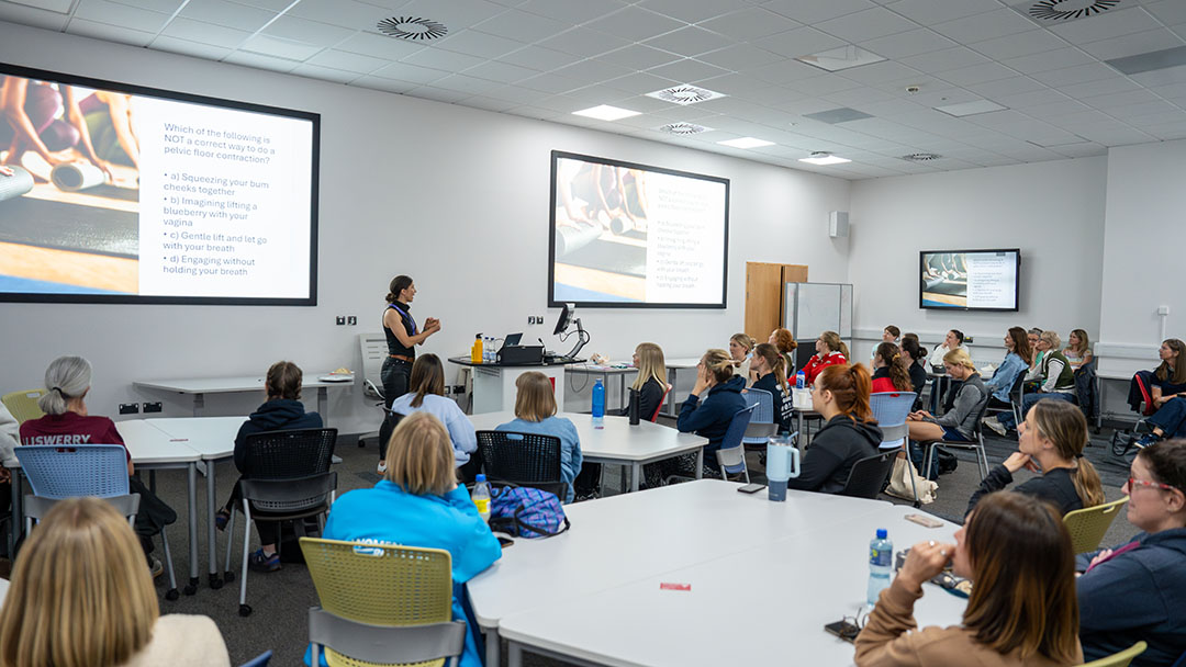 Imogen Williams delivering a workshop on Pelvic Health. Photo by Joe Blake.