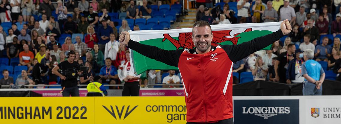 Competing alongside Aled Davies in the shot put is Michael Jenkins (Pembrokeshire), Jenkins broke the discus world record for his classification in last year’s Welsh Senior Outdoor Championships.