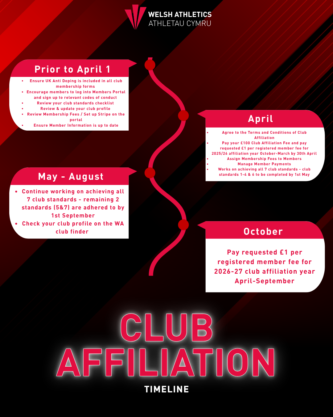 Review the Club Standards checklist on the myAthletics Portal. Pay particular attention to Club Standard 6 (Safeguarding), which is mandatory for affiliation: