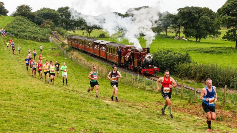 Race the Train is a largely cross-country challenge against the Tally Llyn heritage steam railway. The route goes through some parts of the UNESCO North Wales Slate Heritage site.